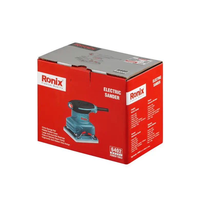 سنباده لرزان مشتی 220 وات 6402 رونیکس، ابزاری ضروری برای کارگاه‌های نجاری، صنایع دستی و تعمیرات است. اگر به دنبال یک ابزار قدرتمند و کارآمد برای صاف‌کاری و پرداخت سطوح مختلف هستید، این محصول انتخاب مناسبی برای شما خواهد بود.